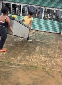Ahora se observa a grupos de jóvenes y familias organizadas que recorren las calles, llevando comida, ropa y medicamentos a los damnificados.