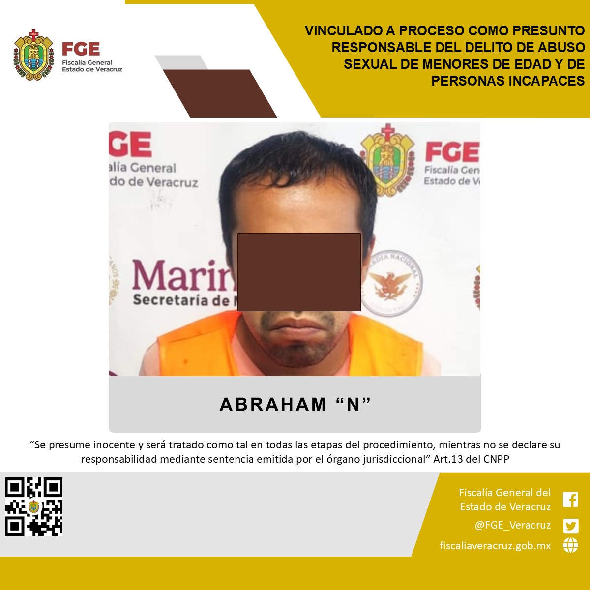 Orizaba, Ver., 13 de octubre de 2025.- La Fiscalía Coordinadora Especializada en Delitos contra las Mujeres, Feminicidio, Familia y Trata de Personas obtuvo vinculación a proceso en contra de Abraham “N” como presunto responsable del delito de abuso sexual de menores de edad y de personas incapaces en agravio de una víctima de identidad resguardada.