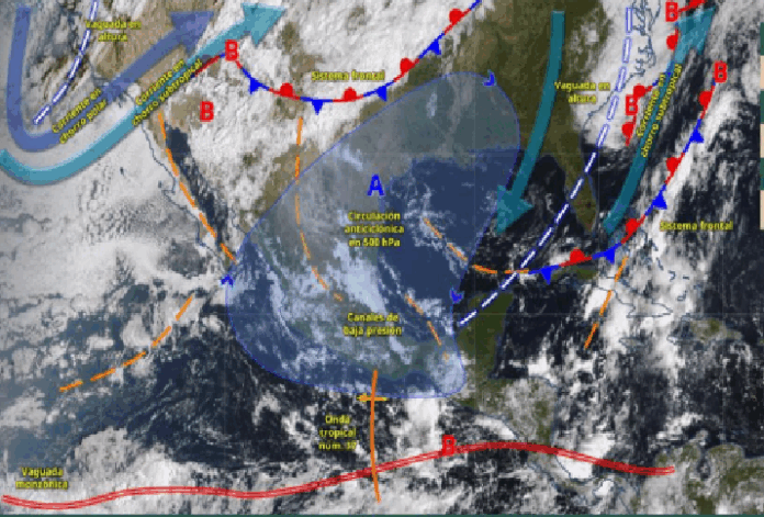 La Comisión Nacional del Agua (Conagua) informó que la persistencia de un canal de baja presión extendido sobre el suroeste golfo de México, el ingreso de humedad y la interacción con una circulación ciclónica en la atmósfera superior ocasionarán el desarrollo de nublados con probabilidad para lluvias fuertes (25 a 50 mm) a muy fuertes (50 a 75 mm) especialmente el día miércoles en porciones medias y altas de las cuencas de los ríos Cazones, Tecolutla, Papaloapan y Coatzacoalcos; lloviznas y lluvias con intervalos de chubascos (5.1 a 25 mm) en el resto de la entidad veracruzana.