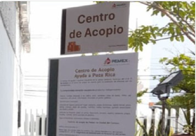Petróleos Mexicanos instaló siete centros de acopio de víveres, alimentos de mascotas, artículos de higiene personal, limpieza, agua embotellada, colchonetas, cobijas o colchones en apoyo a la población afectada por lluvias e inundaciones en Poza Rica, Veracruz.