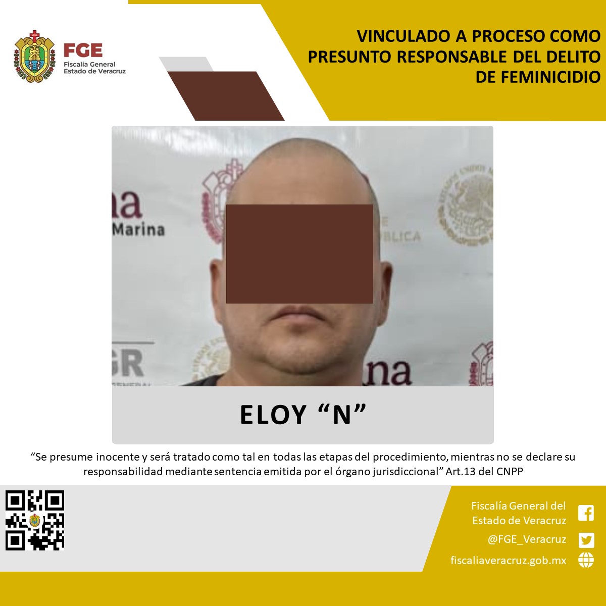 Tierra Blanca, Ver., 20 de octubre de 2025.-La Fiscalía Coordinadora Especializada en Delitos contra las Mujeres, Feminicidio, Familia y Trata de Personas obtuvo vinculación a proceso en contra de Eloy “N” como presunto responsable del delito de feminicidio, en agravio de una víctima con identidad resguardada.