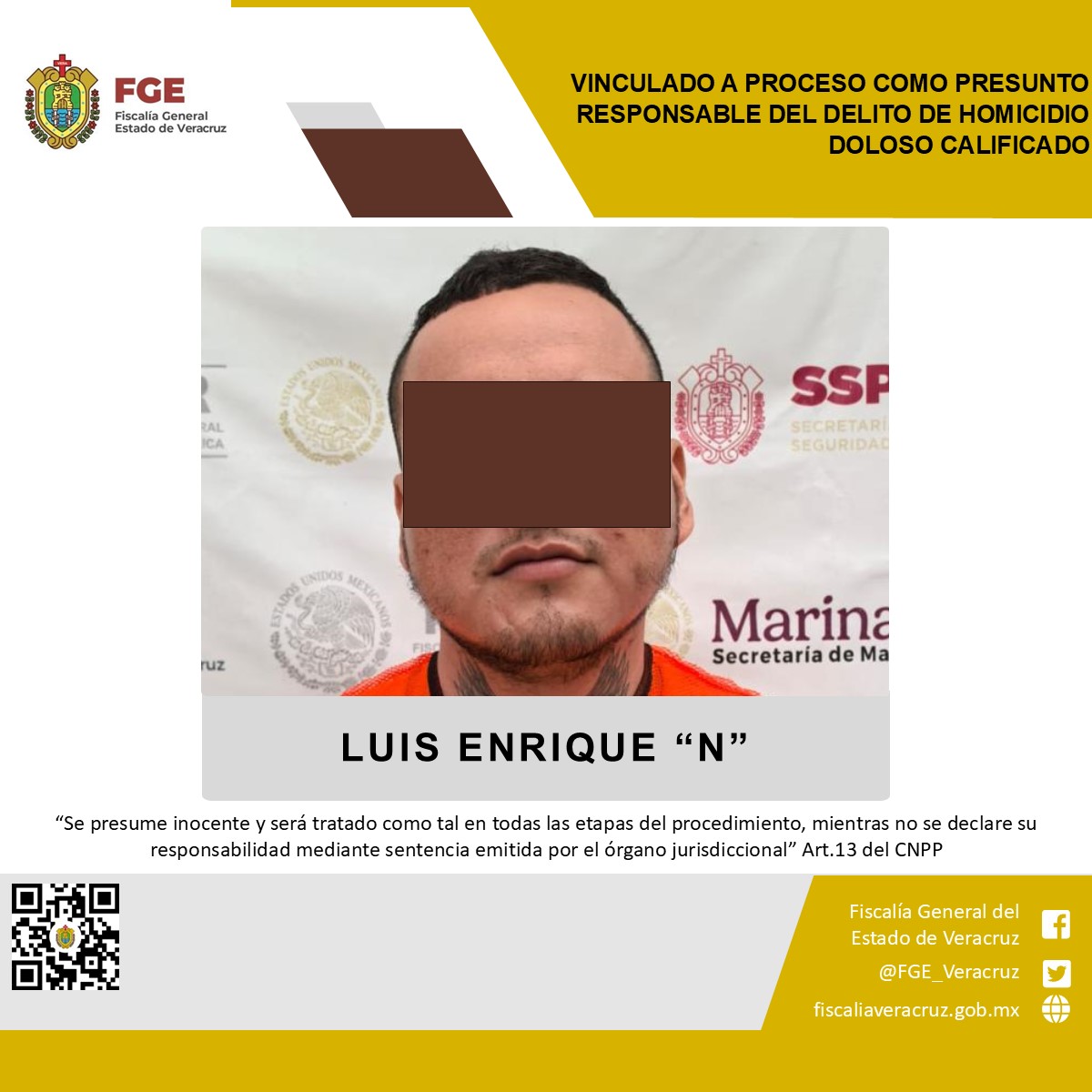 Córdoba, Ver., 22 de octubre de 2025.-La Fiscalía Regional Córdoba obtuvo vinculación a proceso en contra de Luis Enrique “N” como presunto responsable del delito de homicidio doloso calificado en agravio de la víctima identificada con las iniciales L.A.G.M.