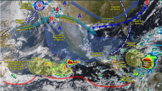 Conforme transcurra el fin de semana, se prevé comience a dominar la circulación anticiclónica sobre la mayor parte del golfo de México, situación que favorecerá la disminución del potencial de lluvias sobre la mayor parte de la región de pronóstico.