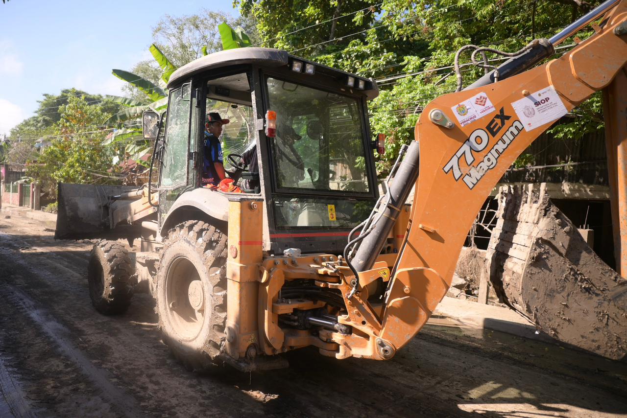 El Gobierno de Veracruz, a través de la Secretaría de Infraestructura y Obras Públicas (SIOP), coordina las labores de limpieza, remoción de lodo y restablecimiento de la infraestructura en este municipio, donde la reciente inundación afectó aproximadamente al 80 por ciento de la población y paralizó temporalmente la actividad comercial y los servicios básicos.