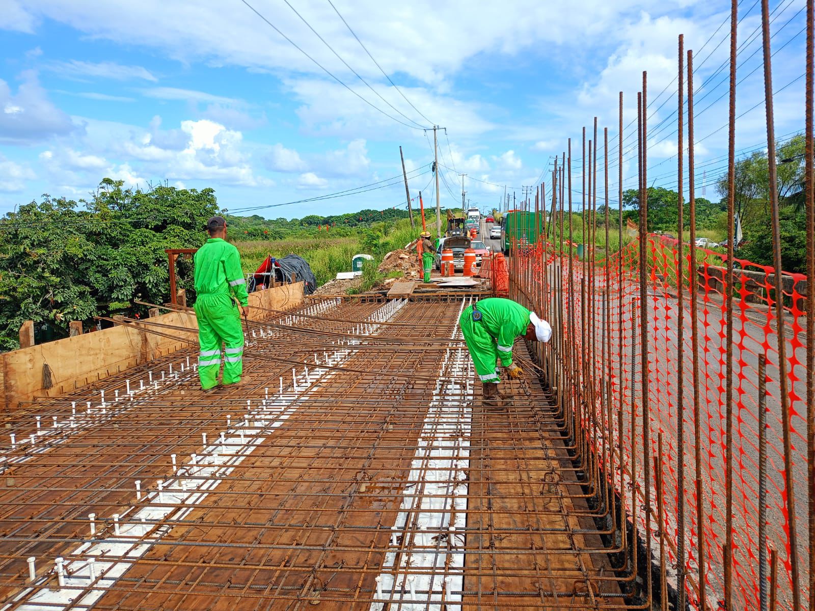 La Secretaría de Infraestructura, Comunicaciones y Transportes (SICT) avanza en la reconstrucción del Puente Calzadas II, ubicado en el municipio de Coatzacoalcos, en Veracruz.