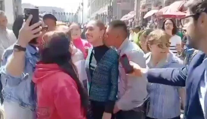Este martes por la tarde circuló un video donde se le ve a la presidenta Claudia Sheinbaum caminando por el centro histórico de la Ciudad de México, saludando a las personas que se le acercaban; cuando de repente se le acerca un sujeto por detrás y la abraza e intenta besar de forma grotesca e irrespetuosa.