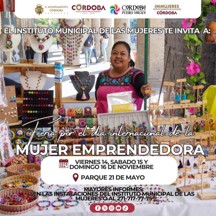 Córdoba, Ver., 07 de noviembre de 2025.- Con motivo del Día Internacional de la Mujer Emprendedora, el Instituto Municipal de las Mujeres realizará una Feria en la que busca dar espacio y reforzar los valores de cada una de las emprendedoras, impulsándolas a ser mujeres fuertes e independientes, así lo dio a conocer Laura Pérez Betancourt, titular del Instituto.