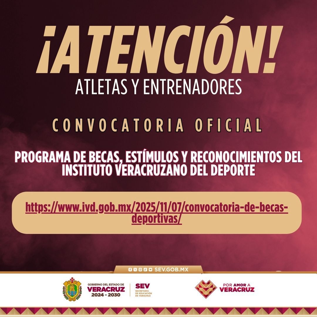 Las bases completas, anexos y formatos oficiales, pueden consultarse en el portal institucional del IVD: https://ivd.egobierno.gob.mx/2025/11/07/-de-becas-deporivas/
