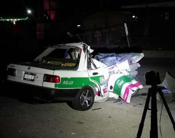 El impacto fue de tal magnitud que el taxista, originario del municipio de Acajete, quedó prensado entre los fierros retorcidos de su unidad.