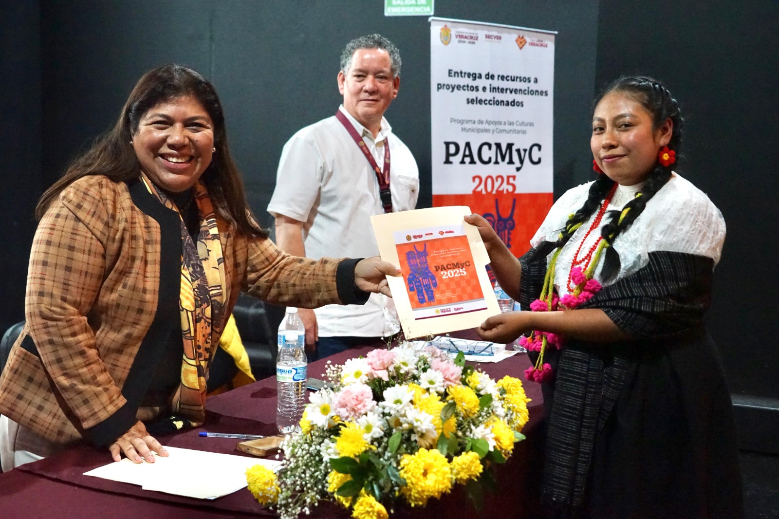 Xalapa, Ver., miércoles 12 de noviembre de 2025.- La Secretaría de Cultura de Veracruz (SECVER) llevó a cabo la entrega de recursos a proyectos e intervenciones de la convocatoria del Programa de Apoyo a las Culturas Municipales y Comunitarias (PACMyC) 2025 de Veracruz, en el que resultaron seleccionados 340 personas portadoras de la cultura comunitaria.