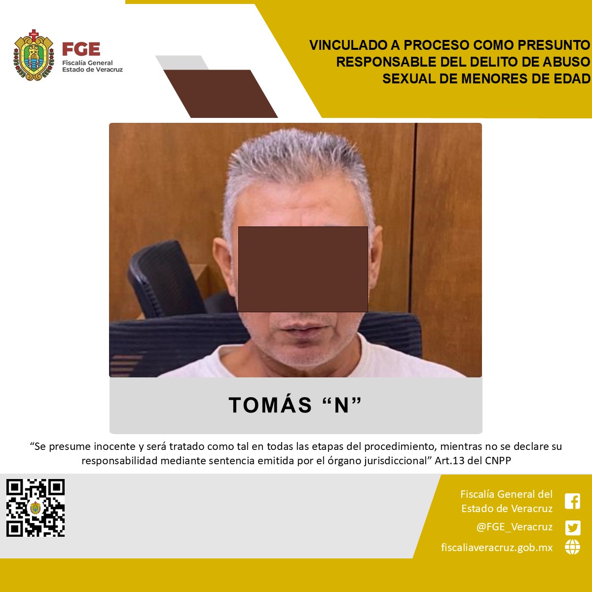 Tlapacoyan, Ver., 14 de noviembre de 2025.- La Fiscalía Coordinadora Especializada en Delitos contra las Mujeres, Feminicidio, Familia y Trata de Personas obtuvo vinculación a proceso en contra de Tomás “N” como presunto responsable del delito de abuso sexual de menores de edad en agravio de una víctima de identidad resguardada.