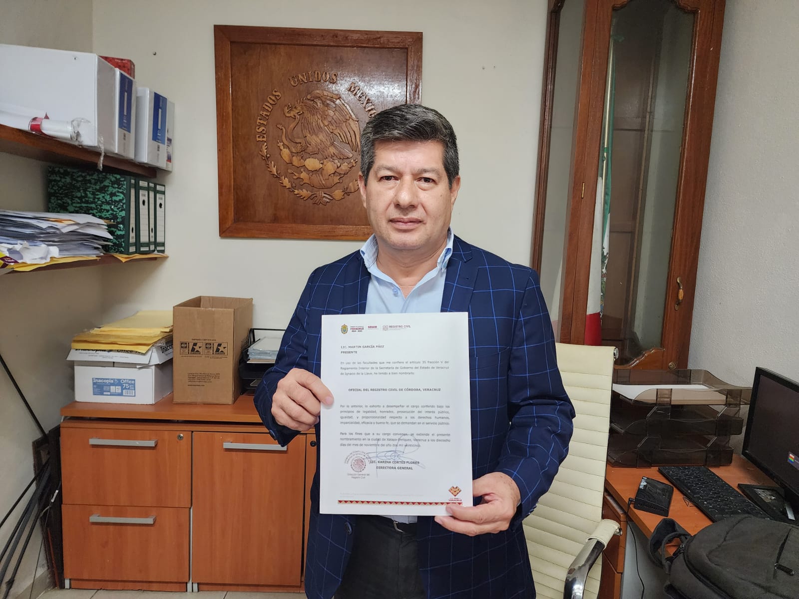 Córdoba, Ver., 18 de noviembre de 2025. – A partir de hoy, el Lic. Martín García Páez funge como nuevo titular de la Oficialía del Registro Civil en el municipio de Córdoba.