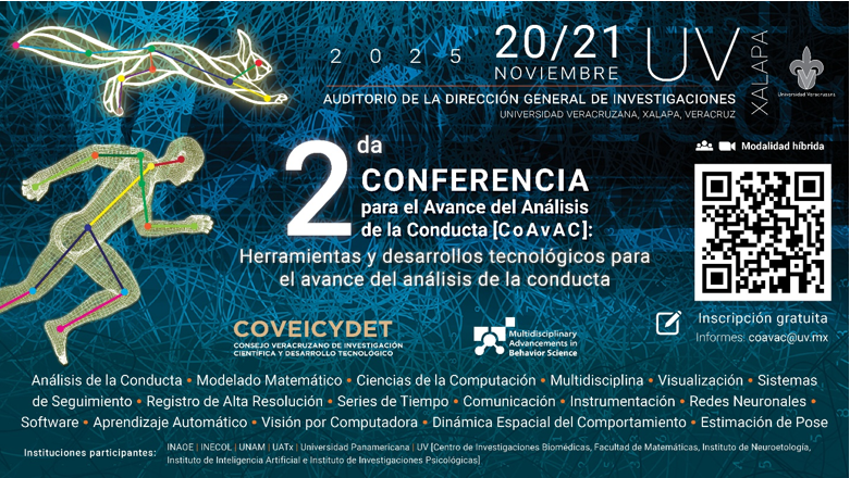 Organizado por el Laboratorio de Psicología Comparada (LabPsiCom) del Centro de Investigaciones Biomédicas, COAVAC 2025 estuvo coordinado por el Dr. Alejandro León Maldonado y la Dra. Varsovia Hernández Eslava, en colaboración con el Dr. Porfirio Toledo Hernández, integrante del Cuerpo Académico de Modelación Matemática de la Facultad de Matemáticas. La conferencia contó con el auspicio del COVEICYDET y con el apoyo de la Dirección General de Investigaciones de la UV.