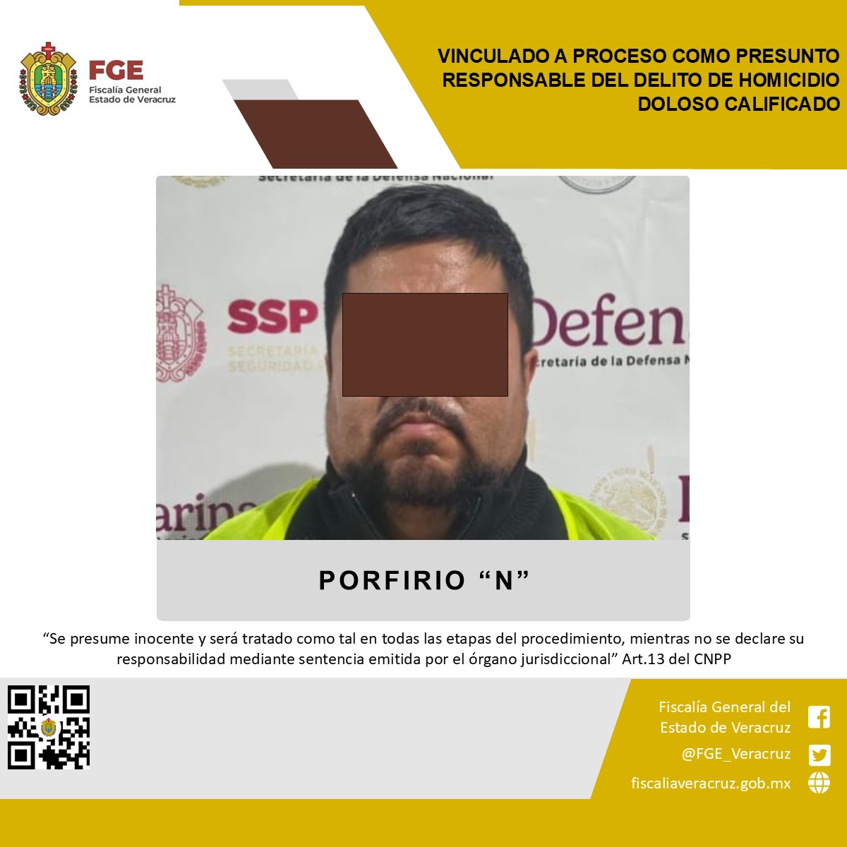 Huatusco, Ver., 25 de noviembre 2025.- La Fiscalía Regional Córdoba obtuvo vinculación a proceso en contra de Porfirio “N” como presunto responsable del delito de homicidio doloso calificado en agravio de la víctima identificada con las iniciales J.L.B.M.
