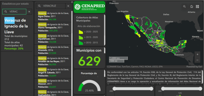 De acuerdo con el Centro Nacional de Prevención de Desastres (Cenapred), hasta este miércoles 26 de noviembre, solo 42 municipios, es decir 20 por ciento, tienen Atlas de Riesgos, pero no todos están actualizados.  Los más recientes son los de Coatzacoalcos y Pánuco, que datan de 2024; les siguen Poza Rica, Cazones de Herrera y Fortín, que los refrescaron en 2023; San Andrés Tuxtla y Tezonapa en 2022 y Córdoba hizo lo propio en 2020. El de la capital veracruzana, Xalapa, es de 2019, pese al crecimiento urbano y los constantes deslaves e inundaciones.
