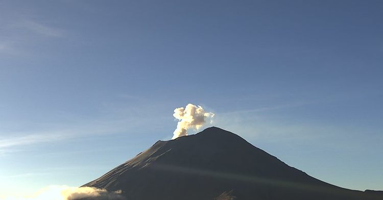 En las últimas 24 horas, en el volcán Popocatépetl se registraron 17 exhalaciones, 38 minutos de tremor, y dos sismos volcanotectónicos.