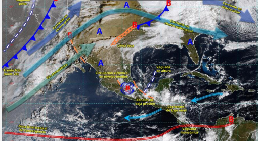 La Comisión Nacional del Agua (Conagua) prevé que los efectos de una vaguada en superficie en el suroeste y occidente del golfo de México, en combinación con una vaguada en altura en la misma región, mantengan durante el sábado y el domingo la presencia de chubascos en la porción sur y la zona montañosa central.