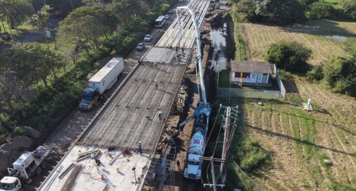 Una vez concluido beneficiará a más de 780 mil habitantes de los municipios de Veracruz, Boca del Río, Medellín de Bravo y Jamapa… Continúa el montaje de trabes, la colocación de cimbra y el armado del acero de refuerzo para losas y diafragmas