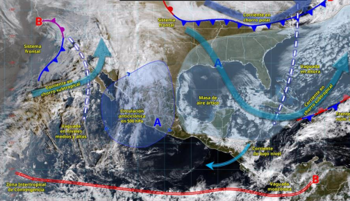 Por su parte, un nuevo sistema frontal puede localizarse sobre el norte y noroeste del golfo de México durante el día domingo, mientras que, frente a la costa veracruzana, se extenderá un canal de baja presión, ocasionando nublados con lloviznas y lluvias aisladas de 5.1 a 25 mm en porciones del centro y sur de Veracruz, y con los mayores acumulados en esta última porción.