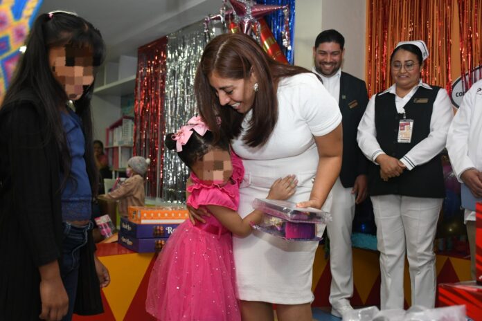 Daniela es una joven madre de familia, quien ha tomado esta encomienda con bastante ánimo y ganas: el primer día del año fue a dejar sus buenas canastillas a los recién nacidos de diversos hospitales; luego de aventó un recorrido de entrega de juguetes y corte de roscas en diversos puntos del municipio. Arranca pues, con mucho contacto social.