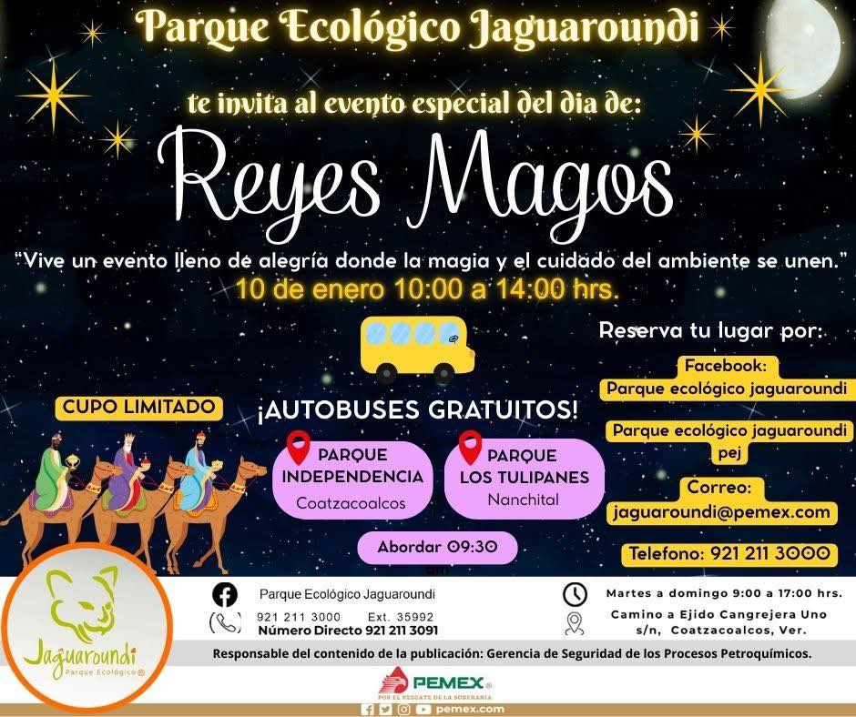 Coatzacoalcos, Veracruz.- Petróleos Mexicanos (Pemex), con motivo del Día de Reyes, realizará un evento en el Parque Ecológico Jaguaroundi (PEJ) para que las y los niños asistentes disfruten diferentes actividades en un entorno natural.