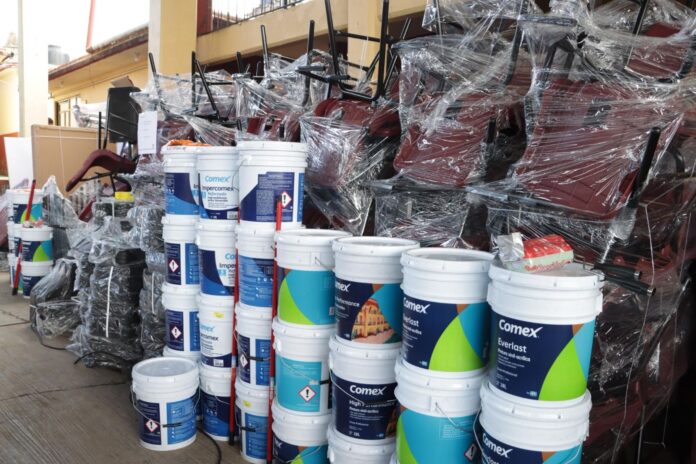 Por ello, la entrega de 319 pupitres, mil 360 mesas trapezoidales, dos mil 720 sillas para mesa trapezoidal, 283 pintarrones, 647 botes de pintura, 205 brochas, 203 rodillos con extensión y 636 cubetas de impermeabilizante responde a las necesidades reales previamente identificadas principalmente en las instituciones afectadas por las lluvias extraordinarias de octubre.