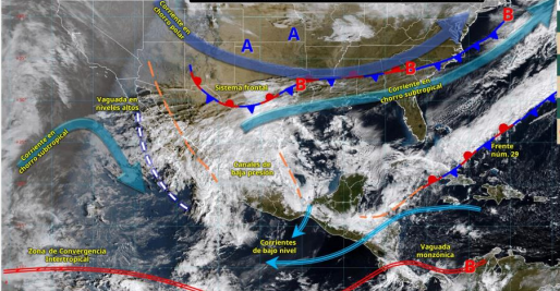 La Comisión Nacional del Agua (Conagua) informó que a partir del miércoles se prevé el restablecimiento de una circulación anticiclónica sobre el golfo de México, la cual prevalecerá hasta el día viernes, previo al ingreso de un sistema frontal durante la madrugada del sábado sobre el noreste del territorio nacional.