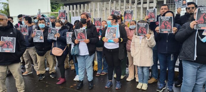 Personal administrativo por contrato del Centro de Alta Especialidad (CAE) “Doctor Rafael Lucio” protestó nuevamente afuera de la institución para denunciar el incumplimiento en el pago del salario mínimo vigente correspondiente al año 2026, así como la falta de retroactivos.
