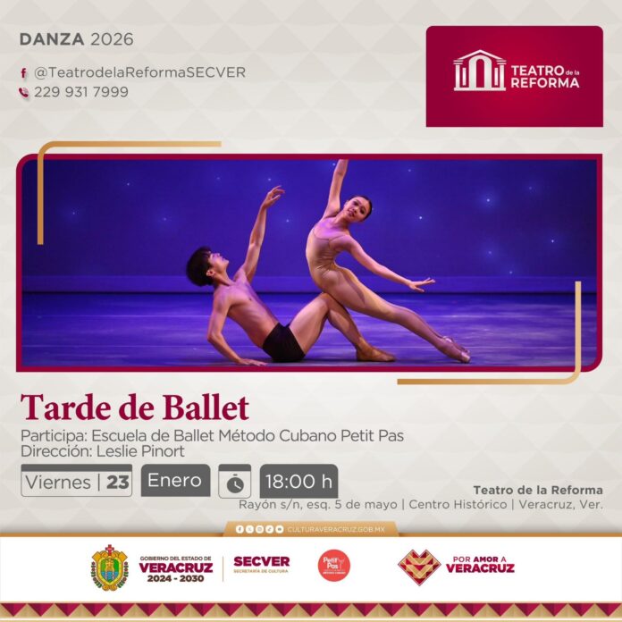 Xalapa, Ver., jueves 22 de enero de 2026.- La Secretaría de Cultura de Veracruz (SECVER) invita a asistir al recital de danza Tarde de Ballet, de la Escuela de Ballet Método Cubano Petit Pas, a presentarse este viernes a las 18:00 horas, en la Sala Principal del Teatro de la Reforma, en el puerto de Veracruz. La entrada es libre.