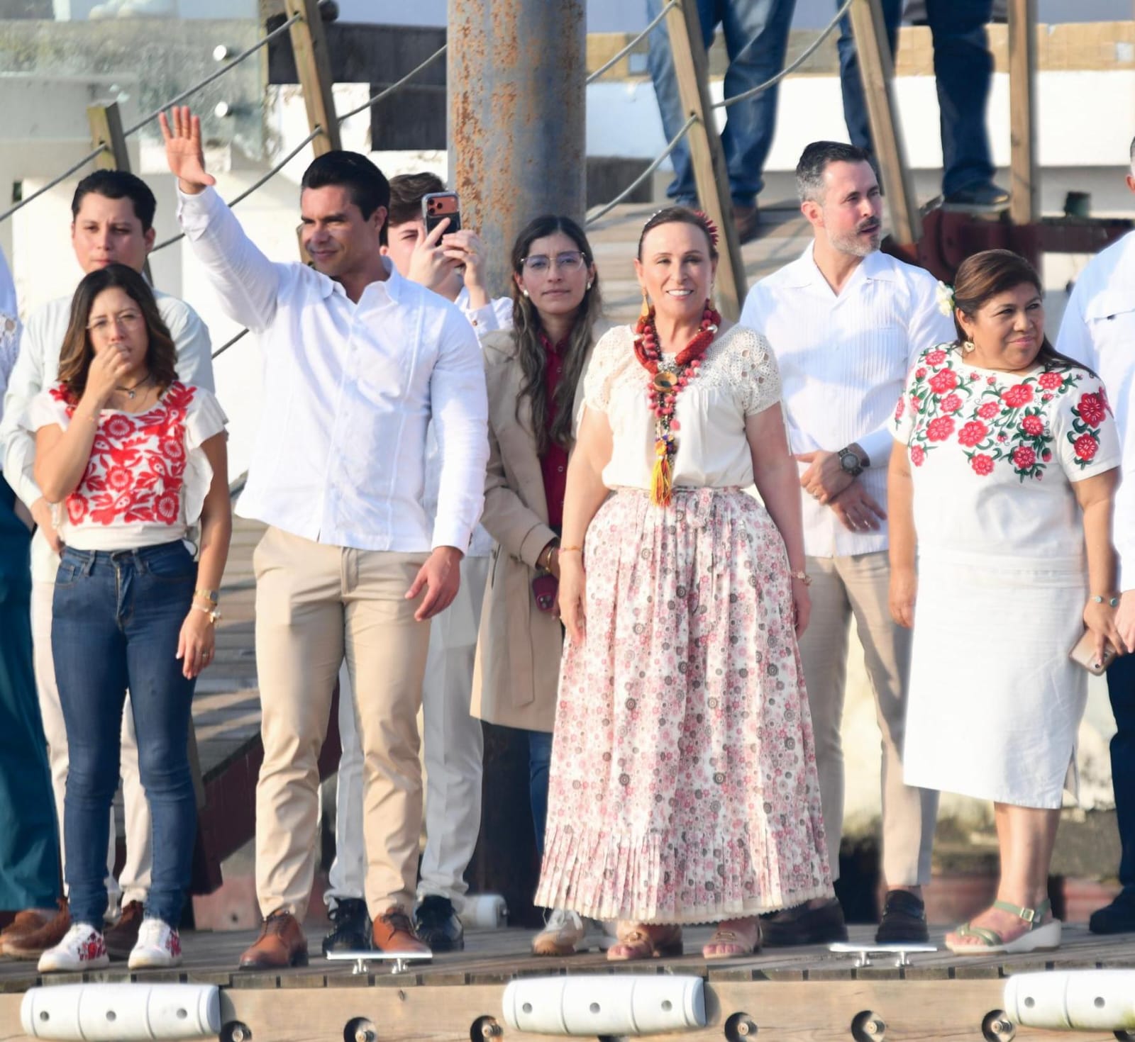 Tlacotalpan, Ver., lunes 02 de febrero de 2026.– En el marco de las fiestas de La Candelaria, la gobernadora Rocío Nahle García refrendó su respaldo al talento artesanal veracruzano al portar un vestido elaborado por la artesana textil tlacotalpeña Zayra Palacios Aguilera, como muestra del arraigo cultural y la identidad que distinguen a esta región del estado.
