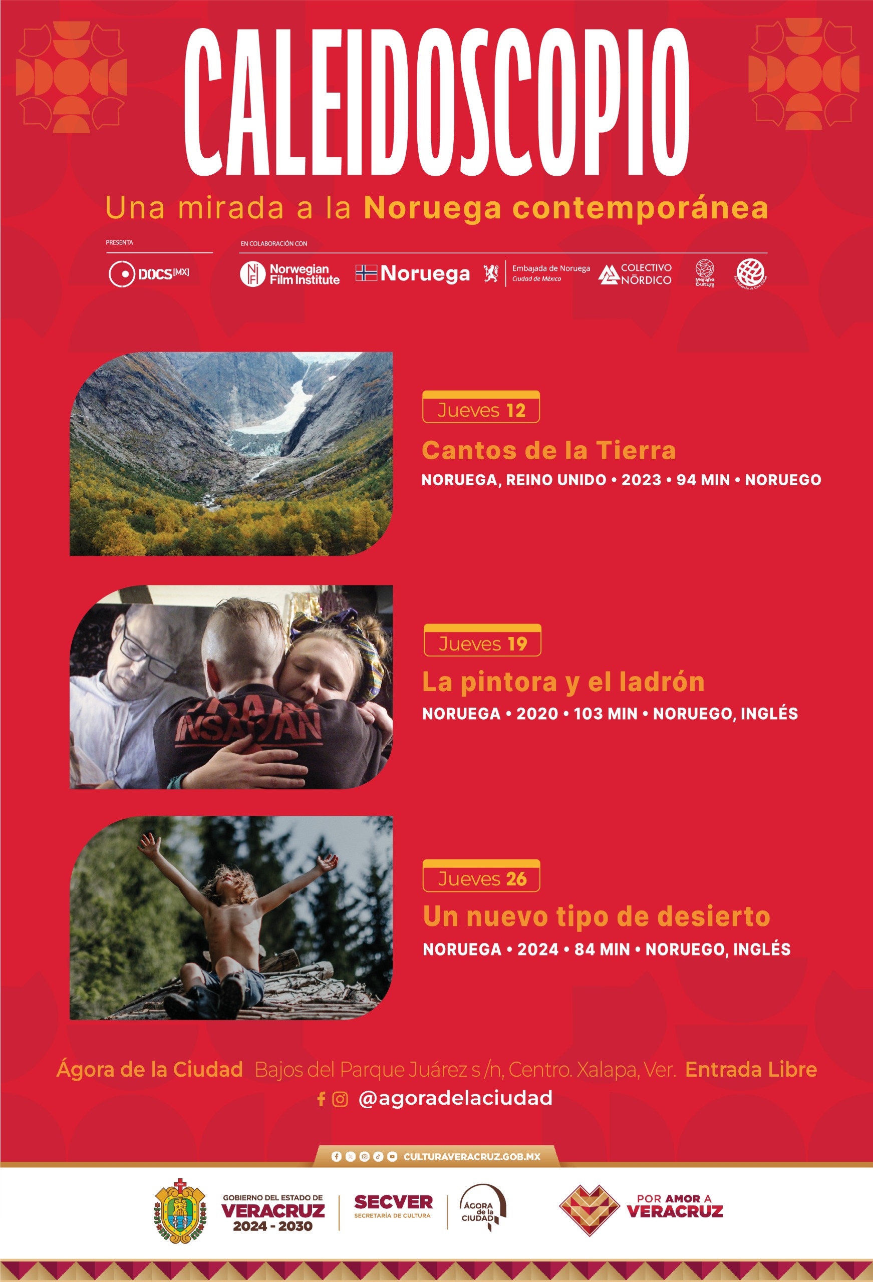 En coordinación con DocsMX, la Embajada de Noruega en México, el Norwegian Film Institute, Maraña es Cultura A. C. y la Red Xalapeña de Cineclubes, esta edición presenta el ciclo Caleidoscopio Noruego: Diferentes perspectivas de la Noruega contemporánea.