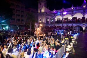 Veracruz, Ver., 10 de febrero de 2026.- Con la lectura de la Proclama se vivió una Quema del Mal Humor histórica y tradicional, en la que miles de personas participaron en este ritual simbólico para dejar atrás los problemas e iniciar con entusiasmo la edición 102 del Carnaval de Veracruz 2026, “La Fiesta de Todos”. El cantante Nelson Kanzela prendió fuego al aborrecido “Bache” como representación de aquello que la ciudad decide desechar y superar para dar inicio formal a las festividades carnestolendas.