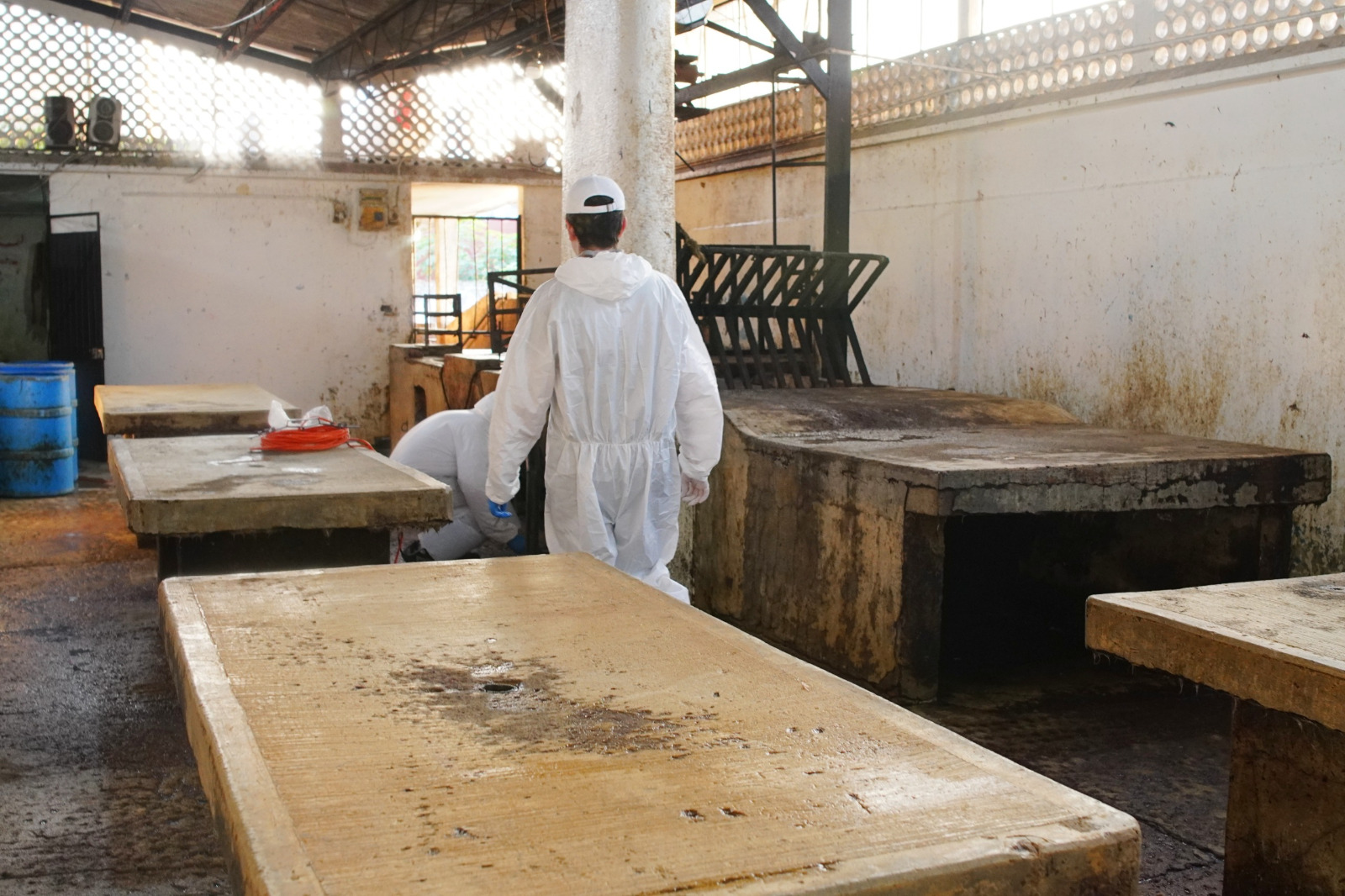 Las labores comprendieron las áreas de sacrificio de res y cerdo, oficinas administrativas, chiqueros y sistemas de desagüe. Antes de iniciar la aplicación, el personal especializado realizó un recorrido técnico para identificar puntos críticos y definir la intervención.