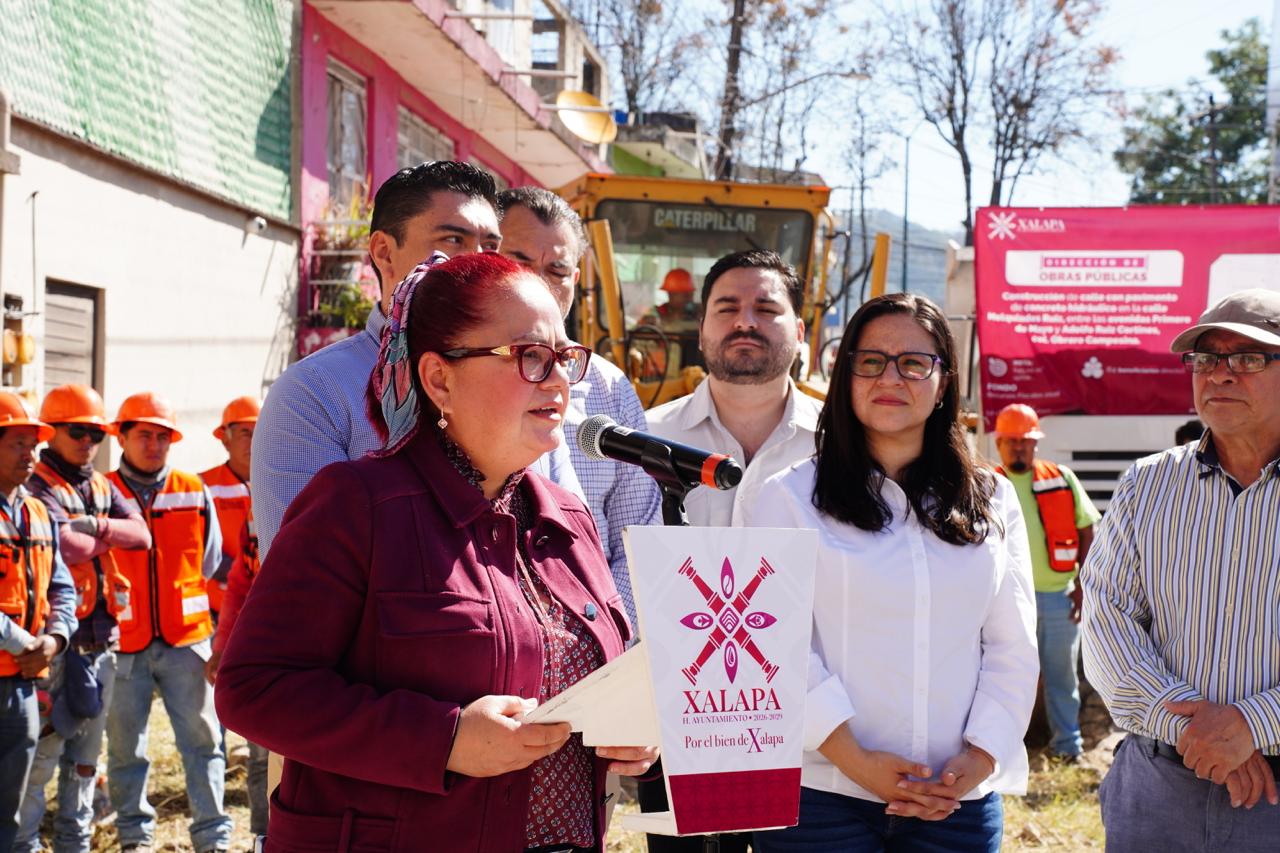 Xalapa, Ver., 18 de febrero de 2026.- Como parte del Programa General de Inversión Pública y de los 100 días de resultados, el Ayuntamiento de Xalapa, encabezado por Daniela Griego Ceballos, a través de la Dirección de Obras Públicas, dio el banderazo de inicio a las primeras obras de pavimentación con concreto hidráulico, las cuales contemplan acciones de alumbrado público.