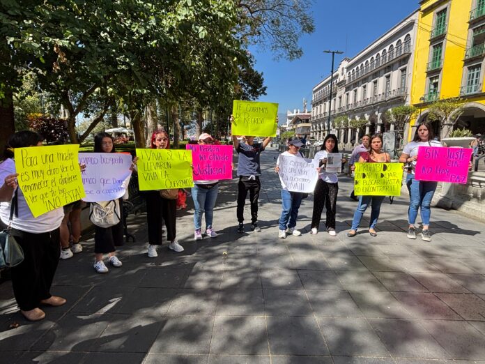 La señora Francisca Reyna Gallegos se manifestó en el centro de Xalapa para denunciar la desaparición de su hija, Damari Estefany Reyna Gallegos, quien fue vista por última vez el viernes 13 de febrero.