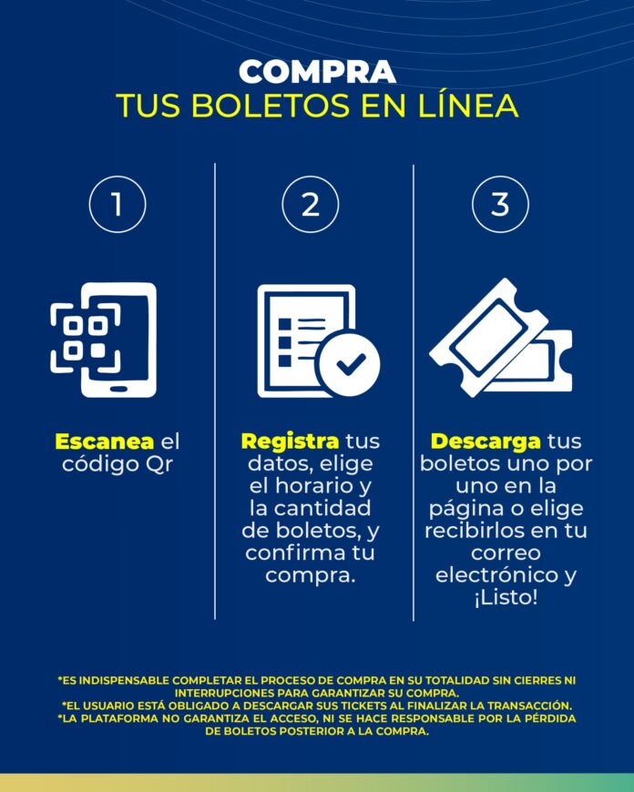 A través de esta herramienta digital, las personas usuarias pueden seleccionar con anticipación la fecha y horario de su recorrido, realizar el pago electrónico y descargar sus accesos de forma inmediata, lo que mejora la experiencia de visita y optimiza el flujo de ingreso al recinto.