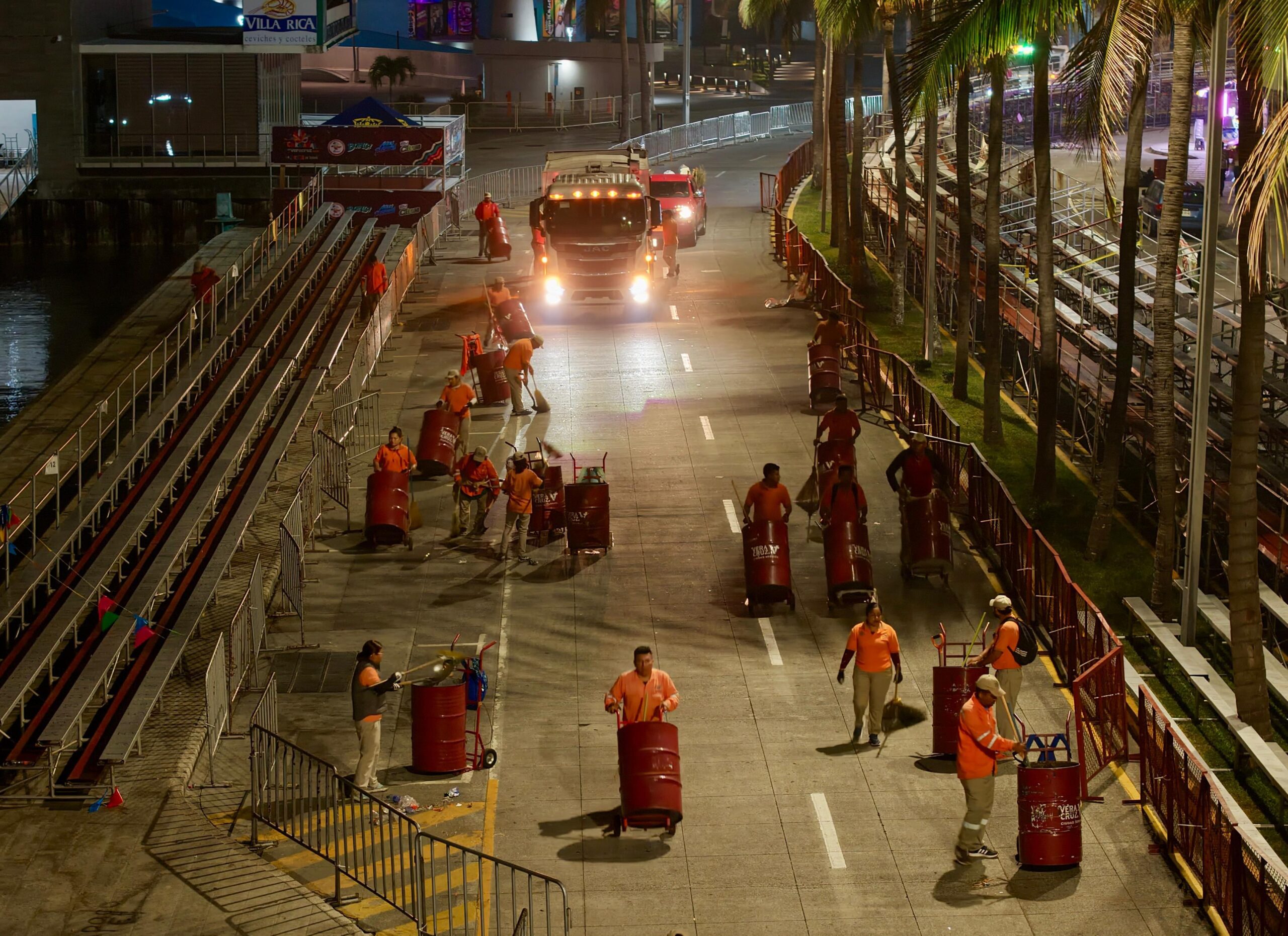 Las labores de limpieza se concentraron principalmente en la zona del bulevar Ávila Camacho, tras los desfiles de carros alegóricos, en donde se recogieron 203 toneladas en los cuatro días de paseos, mientras que, en la Macroplaza del Malecón, que albergó las coronaciones y conciertos masivos, se levantaron 42 toneladas.