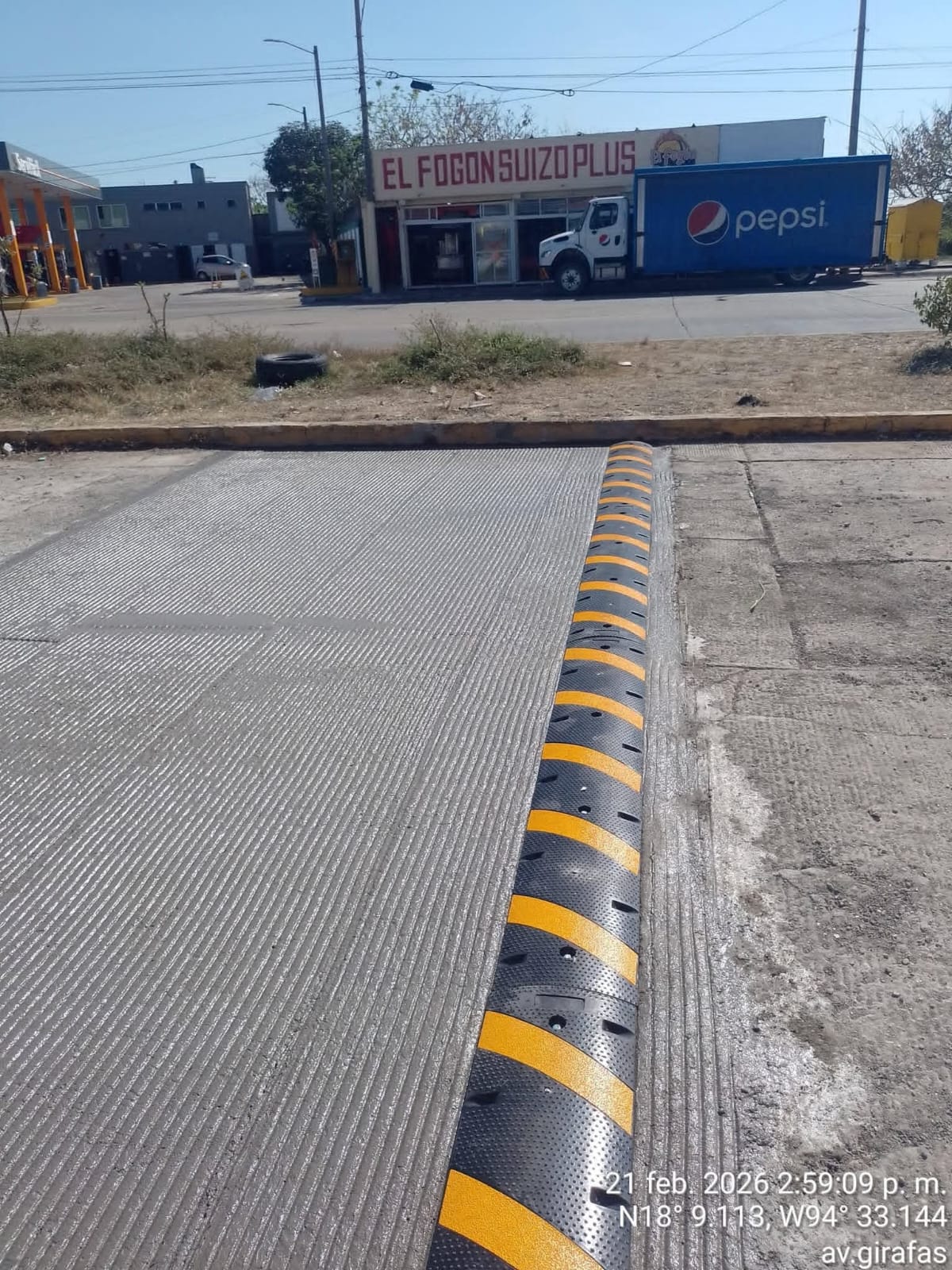 Posteriormente, una empresa externa comenzó con la colocación reductores de velocidad de goma en colores amarillo y negro, diseñados para ofrecer mayor seguridad vial sin afectar de manera excesiva a los automovilistas.