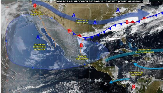 La Comisión Nacional del Agua (Conagua ) informó que para este fin de semana se espera siga dominando la circulación anticiclónica la mayor parte del golfo de México. No obstante, en el noreste y oriente del país y sobre el suroeste de dicho golfo puede extenderse un canal de baja presión, mismo que, junto con el ligero ingreso de humedad hacia la región, el calentamiento diurno y el forzamiento orográfico, pueden ocasionar algunos nublados con probabilidad para lloviznas o lluvias escasas (menores a 5 mm) en la costa y sur de Tamaulipas y en cuencas en cuencas que cruzan el norte y sur de Veracruz, adicionalmente a la zona montañosa central de esta última entidad.