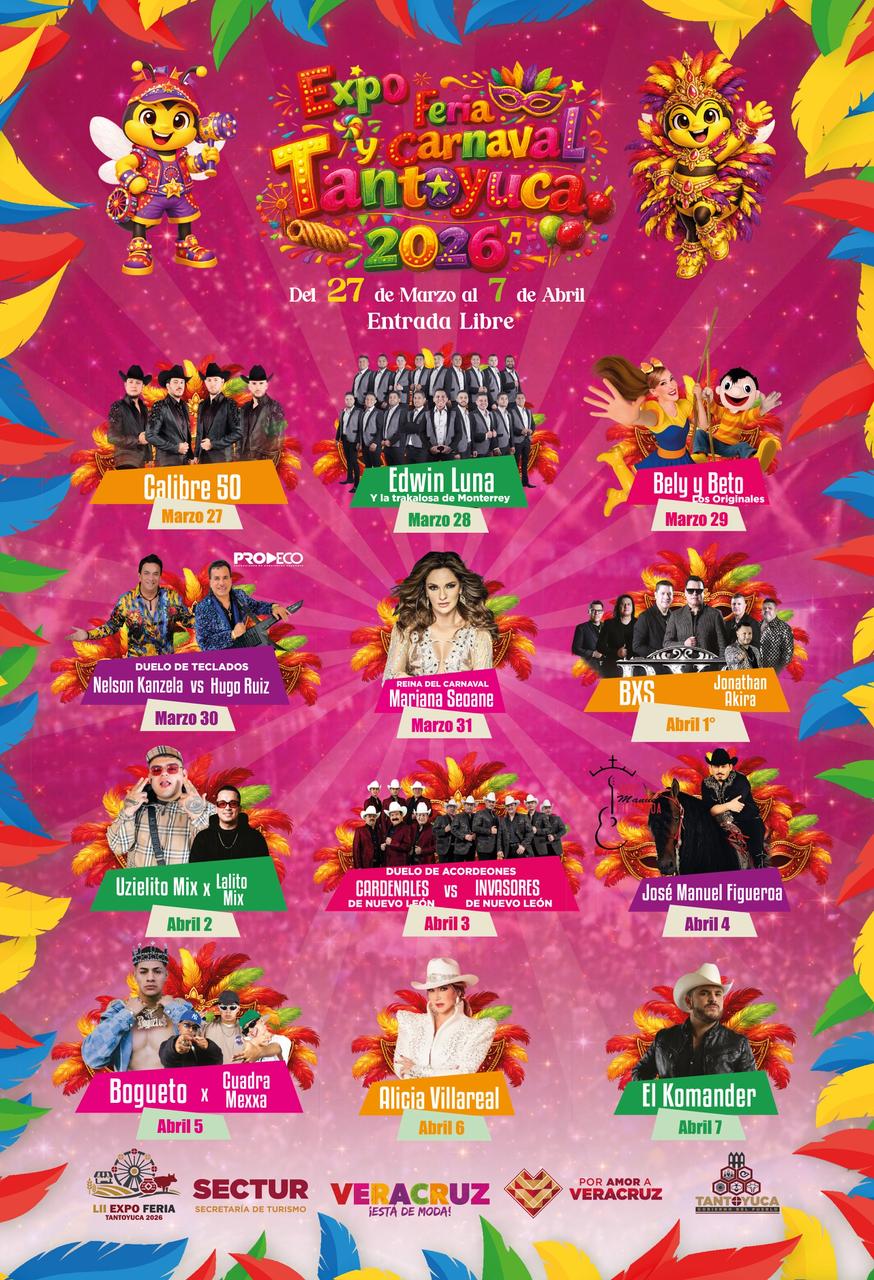 La Expoferia y Carnaval Tantoyuca 2026 contempla una amplia agenda de actividades que incluirá presentaciones musicales, eventos culturales, actividades recreativas y espacios de convivencia para las familias.