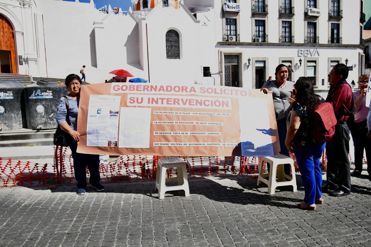 La profesora Susan Cervantes Baizabal protestó frente a Palacio de Gobierno, en la ciudad de Xalapa, para denunciar el presunto despojo arbitrario de su plaza docente en el jardín de niños «Juan Amelia Celis», ubicado en la localidad Chavarrillo, municipio de Emiliano Zapata.