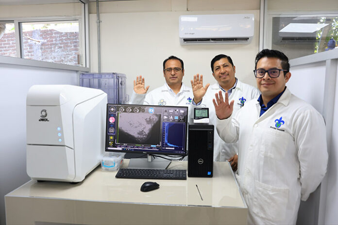 Durante el acto protocolario en el primer punto, la académica de tiempo completo y líder del cuerpo académico de Química Biomolecular, Magda Olivia Pérez Vázquez, explicó que el microscopio electrónico de barrido permite realizar análisis morfológicos y químicos de una amplia variedad de materiales, desde suelos y concreto hasta medicamentos, pinturas o residuos químicos.