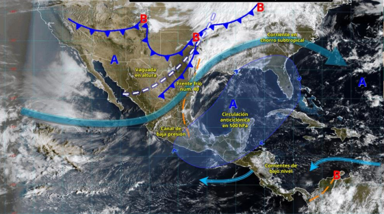 La Comisión Nacional del Agua (Conagua) informó que el frente frío núm. 40 recorra Tamaulipas y Veracruz durante este día y el jueves, para cruzar la península de Yucatán conforme transcurra el viernes, mientras que, por delante de este se moverá un canal de baja presión.