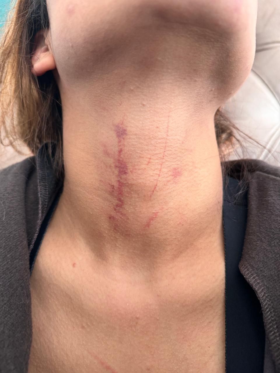 Se observan hematomas en varias partes de su cuerpo, como en el rostro, brazos, espalda y hasta en el cuello, como si su agresor hubiera intentado estrangularla para acabar con su vida.
