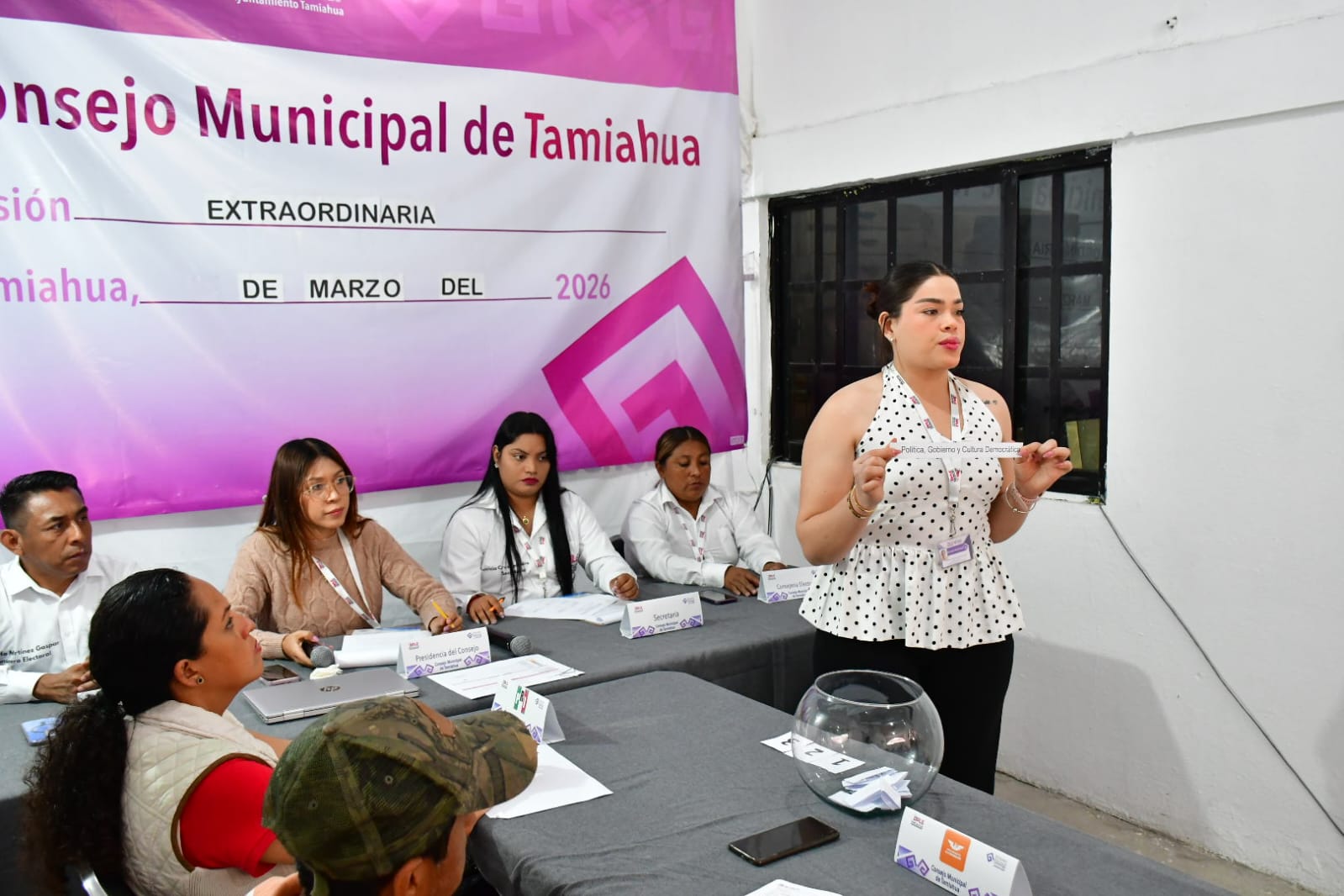 Tamiahua, Ver., 19 de marzo 2026.- En el marco del Proceso Electoral Local Extraordinario 2026 (PELE 2026), el Comité Especial de Debates del Consejo Municipal de Tamiahua realizó el sorteo del orden de participación de candidaturas y los temas del debate virtual que tendrá verificativo este 20 de marzo a las 12:00 horas.