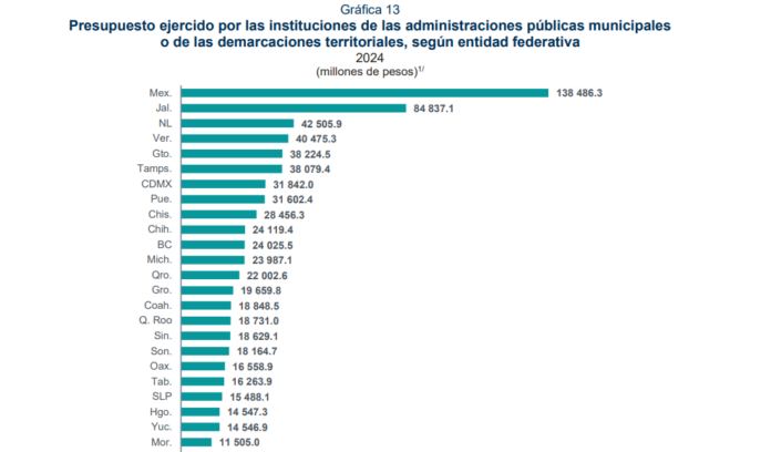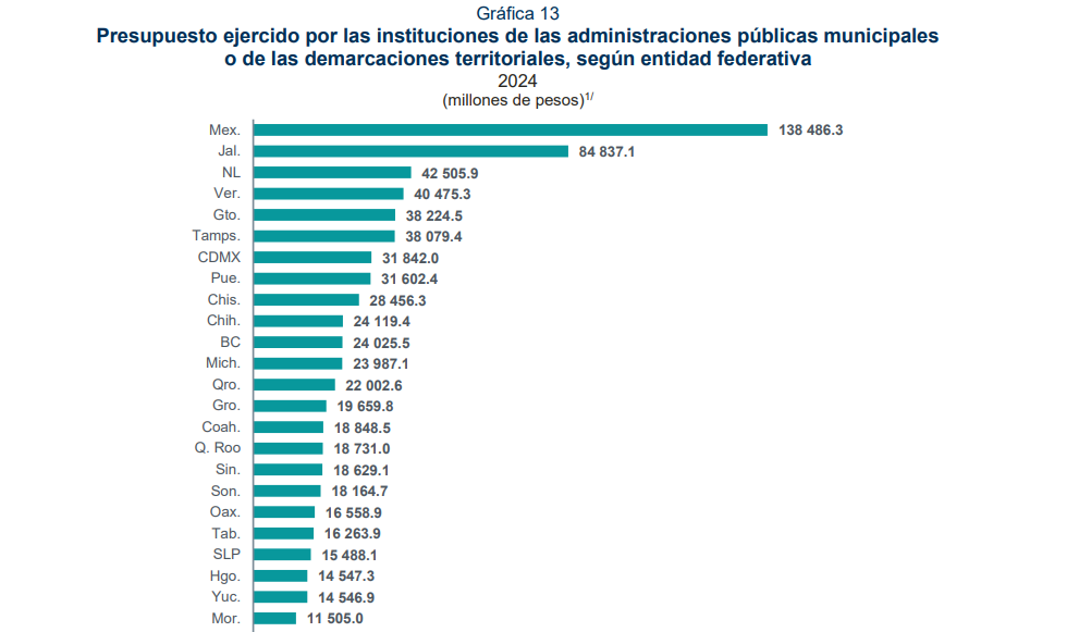 El Censo Nacional de Gobiernos Municipales y Demarcaciones Territoriales de la Ciudad de México (CNGMD) 2025, presentado por el INEGI, indica que el estado de Veracruz concentró el 6.7 % de las contrataciones públicas realizadas por los gobiernos municipales en el país durante el periodo evaluado.