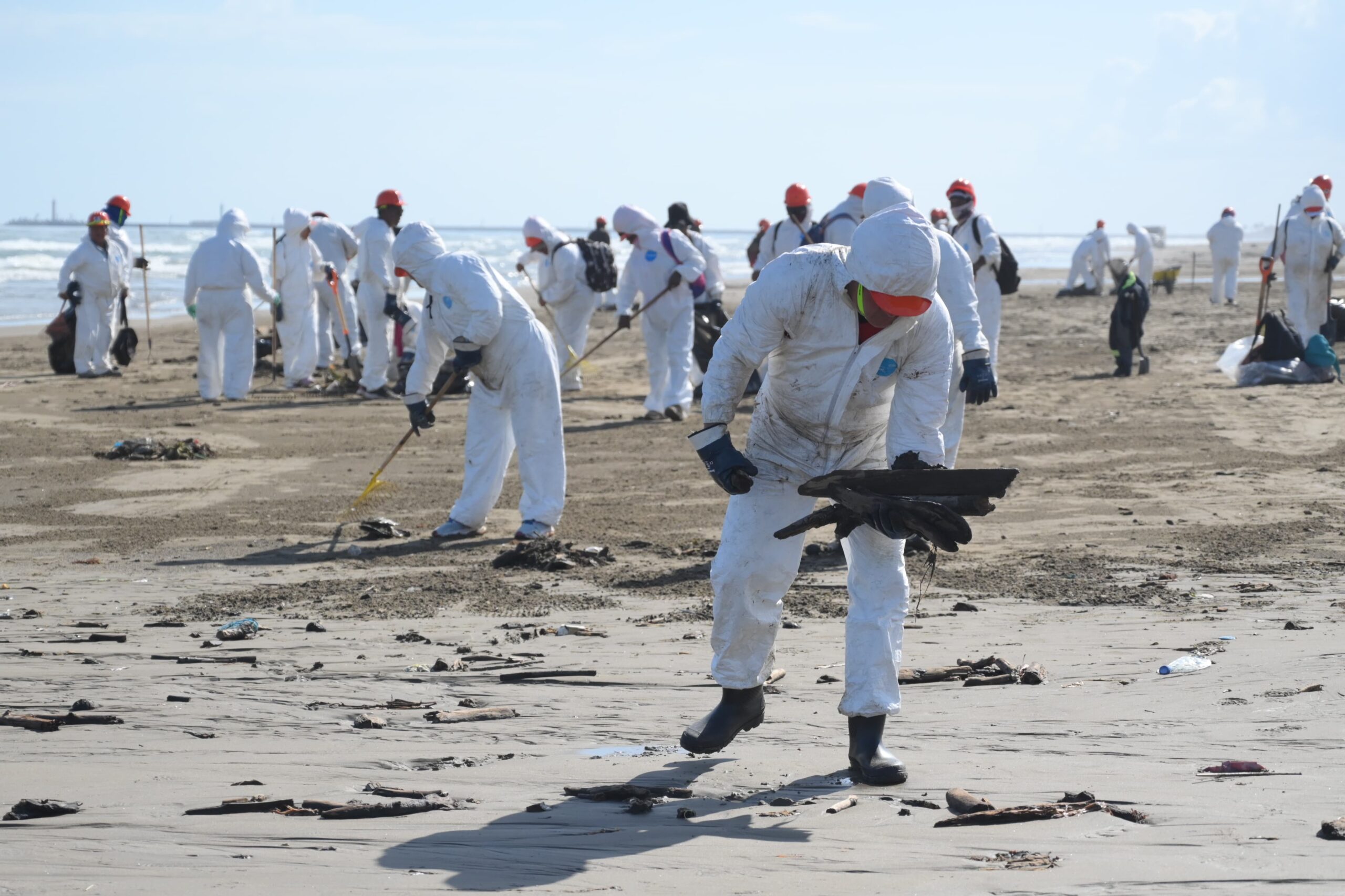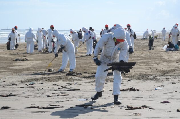 Entre los desechos recolectados se encontraron restos de chapopote derivados del derrame, así como plásticos, latas, cubrebocas, jeringas, bolsas, envases, prendas de vestir y otros materiales contaminantes.