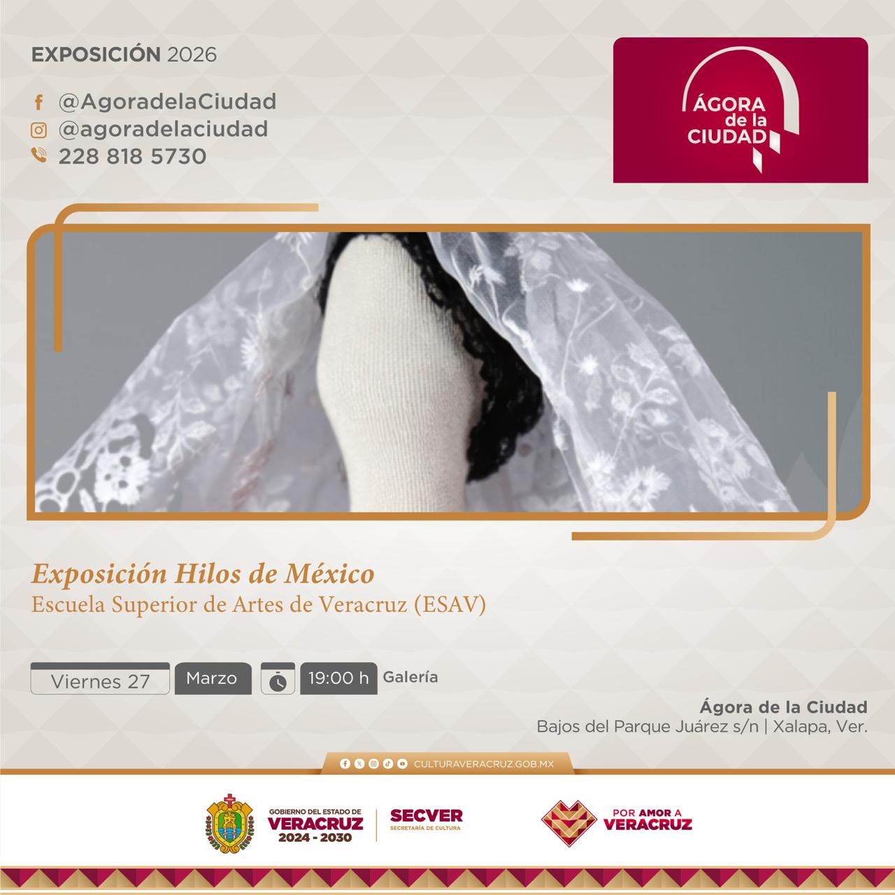 Xalapa, Ver., viernes 27 de marzo de 2026.- La Secretaría de Cultura de Veracruz (SECVER) invita a la inauguración de la exposición Hilos de México, de Víctor Miguel Hernández Aburto, este viernes 27 de marzo, en el Ágora de la Ciudad, cuya entrada es libre.