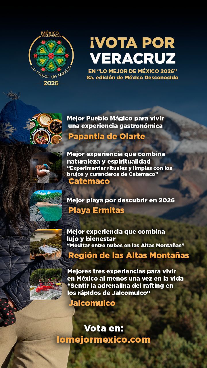 La Secretaría de Turismo de Veracruz (SECTUR) invita a la ciudadanía y a la comunidad viajera a participar en la votación abierta del 20 de marzo al 20 de abril, a través del sitio https://lomejormexico.com/, para respaldar a los destinos veracruzanos nominados.