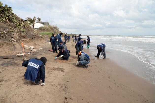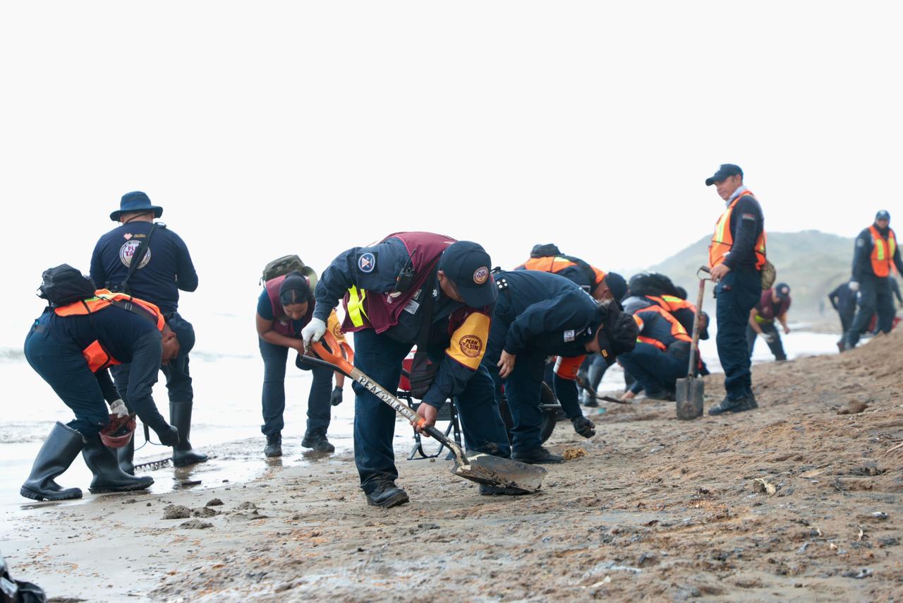 Desde el inicio del arribo de residuos al litoral, brigadas trabajan de manera continua desde temprana hora en distintos puntos, incluyendo las playas La Trocha, La Cava y Salinas, donde se realizan recorridos para la recolección y contención de material.